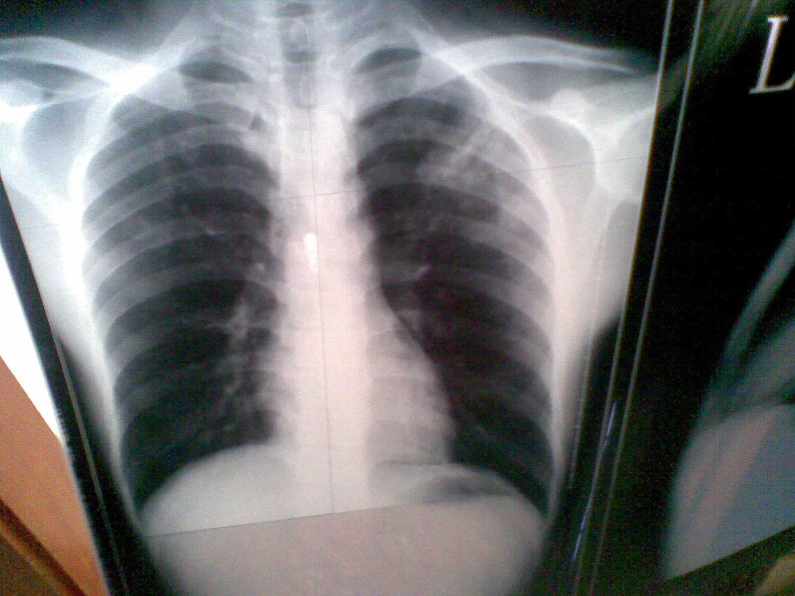 大叶性炎.胸部 x 光胶片显示泡浸润在右中叶结核感染