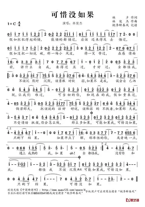 可惜没如果简谱(歌词)-林俊杰演唱-桃李醉春风记谱1