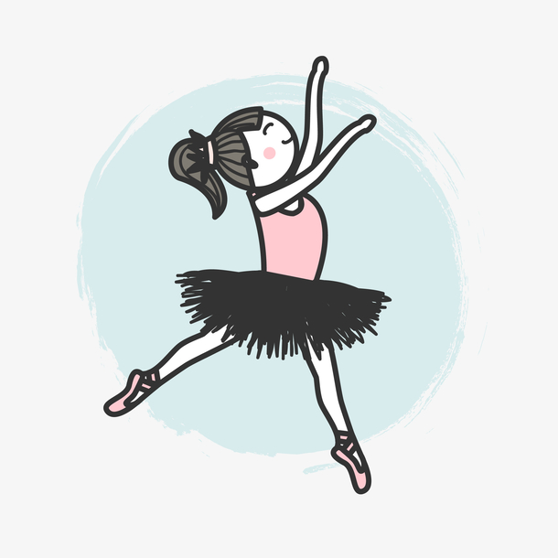 白色手绘卡通女孩人物跳芭蕾舞元素png素材