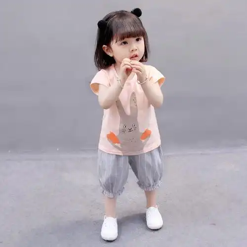 女宝宝夏季短袖套装2018小孩夏装童装儿童宝宝短裤女童1-3-5周岁4