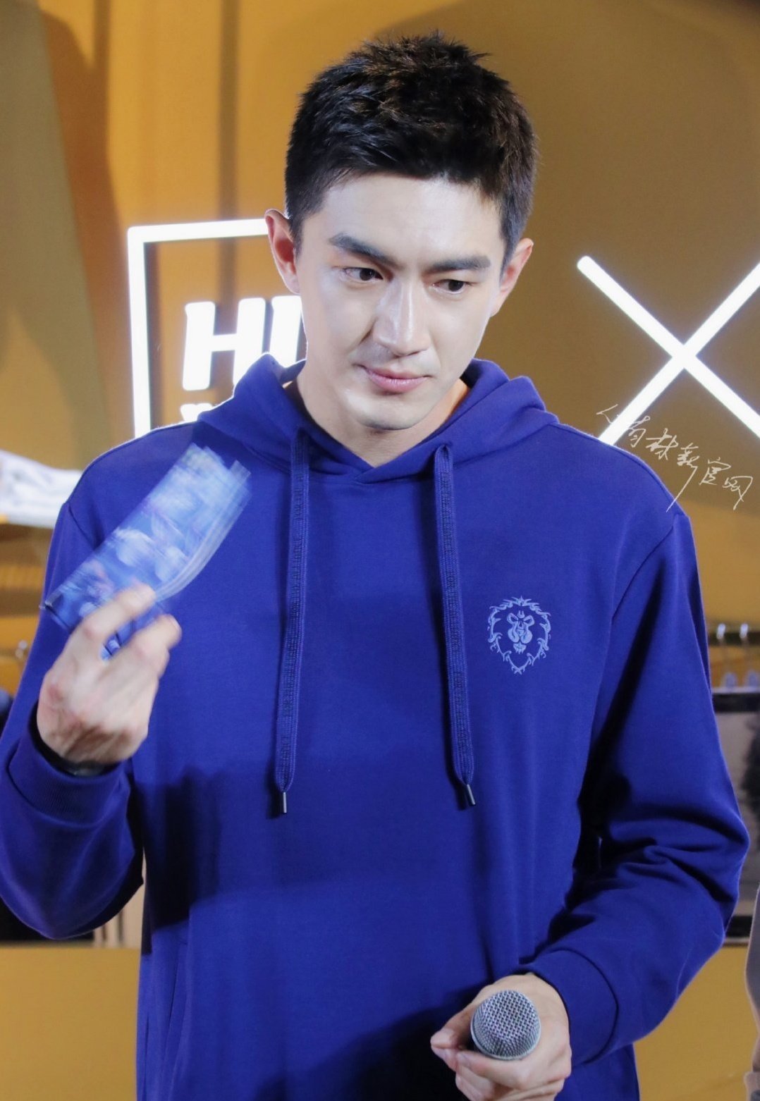 林更新出席某品牌直播活动,以一身极简灰色基础polo衫,利落干净短发