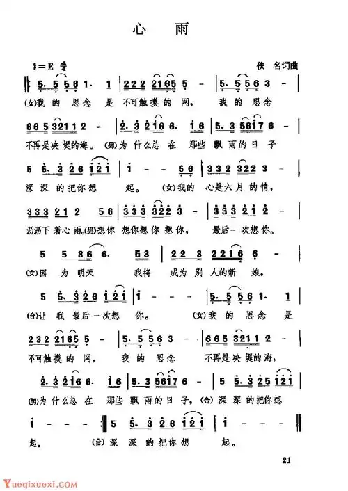 心雨(毛宁,杨钰莹对唱版)简谱-通俗曲谱-爱曲谱网