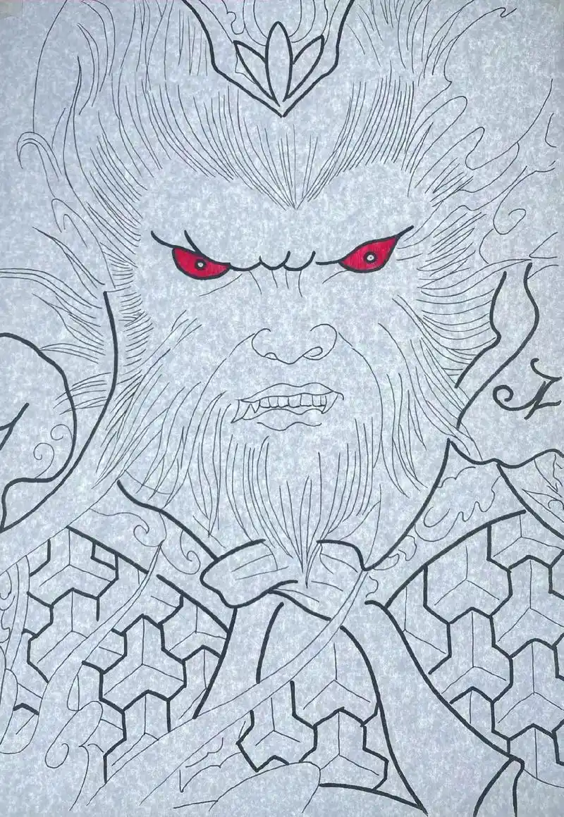 我是雕刻师,一组孙悟空纹身素描雕刻手稿欣赏