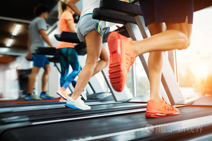 人在做有氧运动训练对在健身房的跑步机的图片