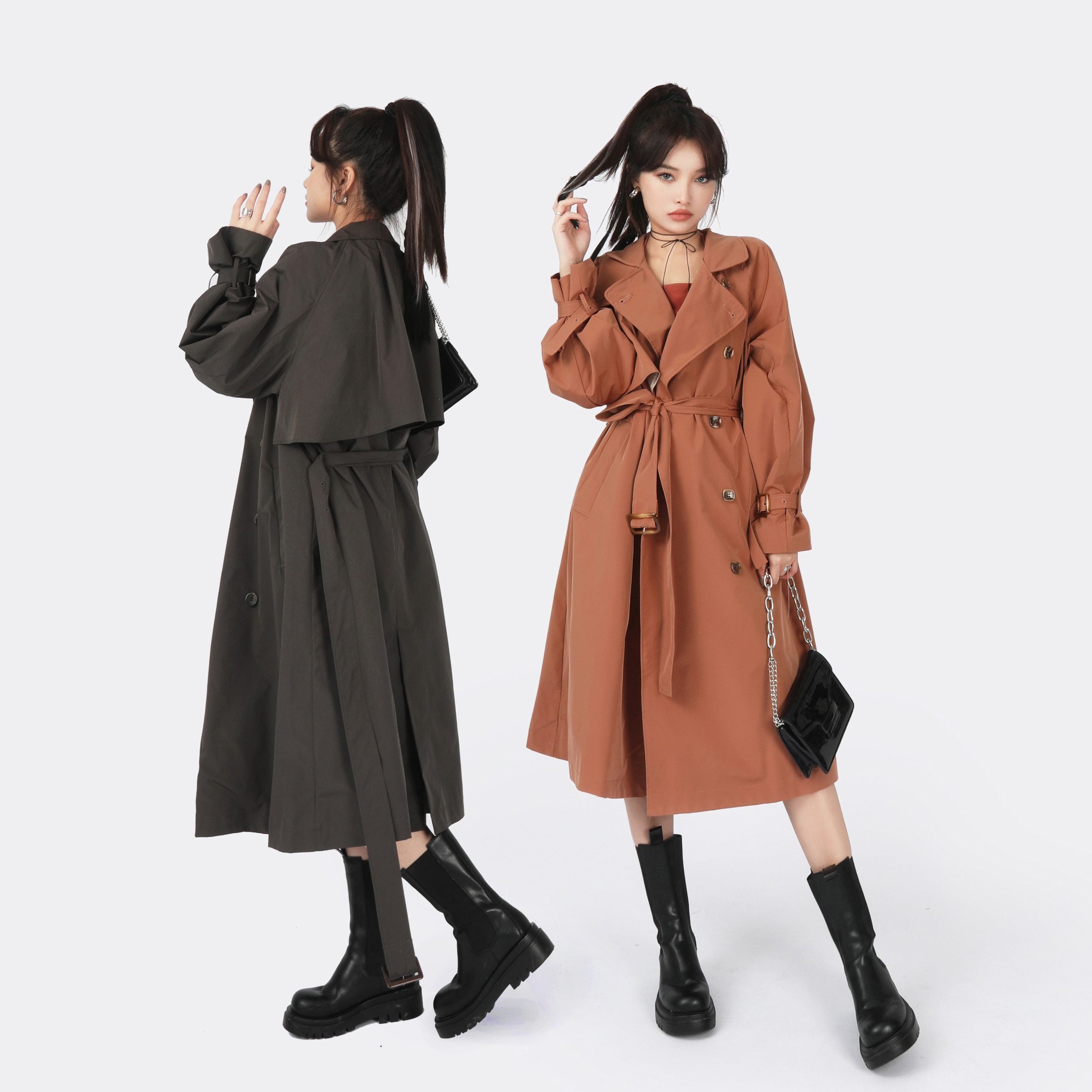 菲伊斯莉品牌长款风衣女过膝英伦风衣女时尚2022年春季新款卡其色气质