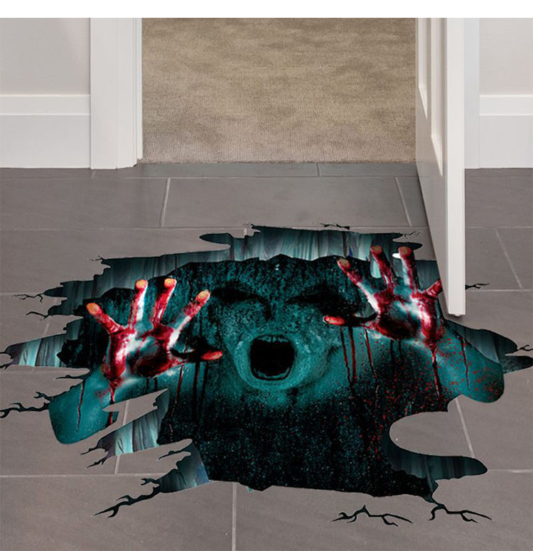 万圣节墙贴纸恐怖地贴画店铺地板装饰品3d立体效果恶作剧吓人贴画fx