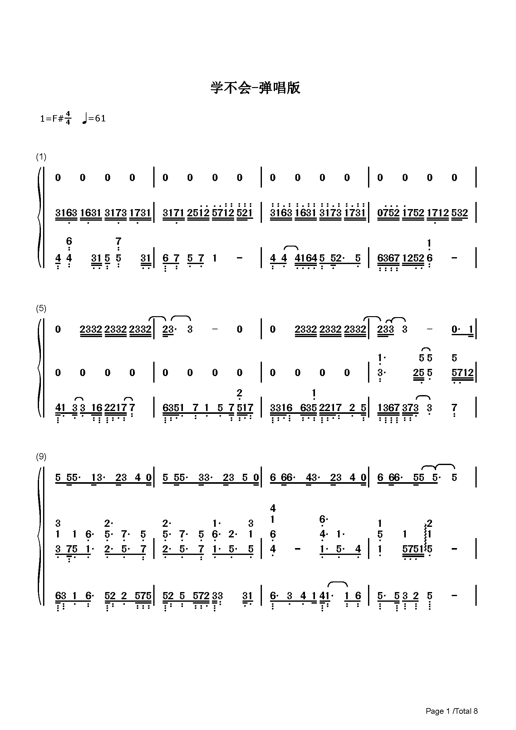 林俊杰-学不会93钢琴谱|||#五线谱 - 抖音