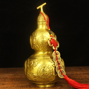 纯铜招财葫芦八卦铜葫芦招财转运镇宅避邪雕刻家居玄关风水摆件