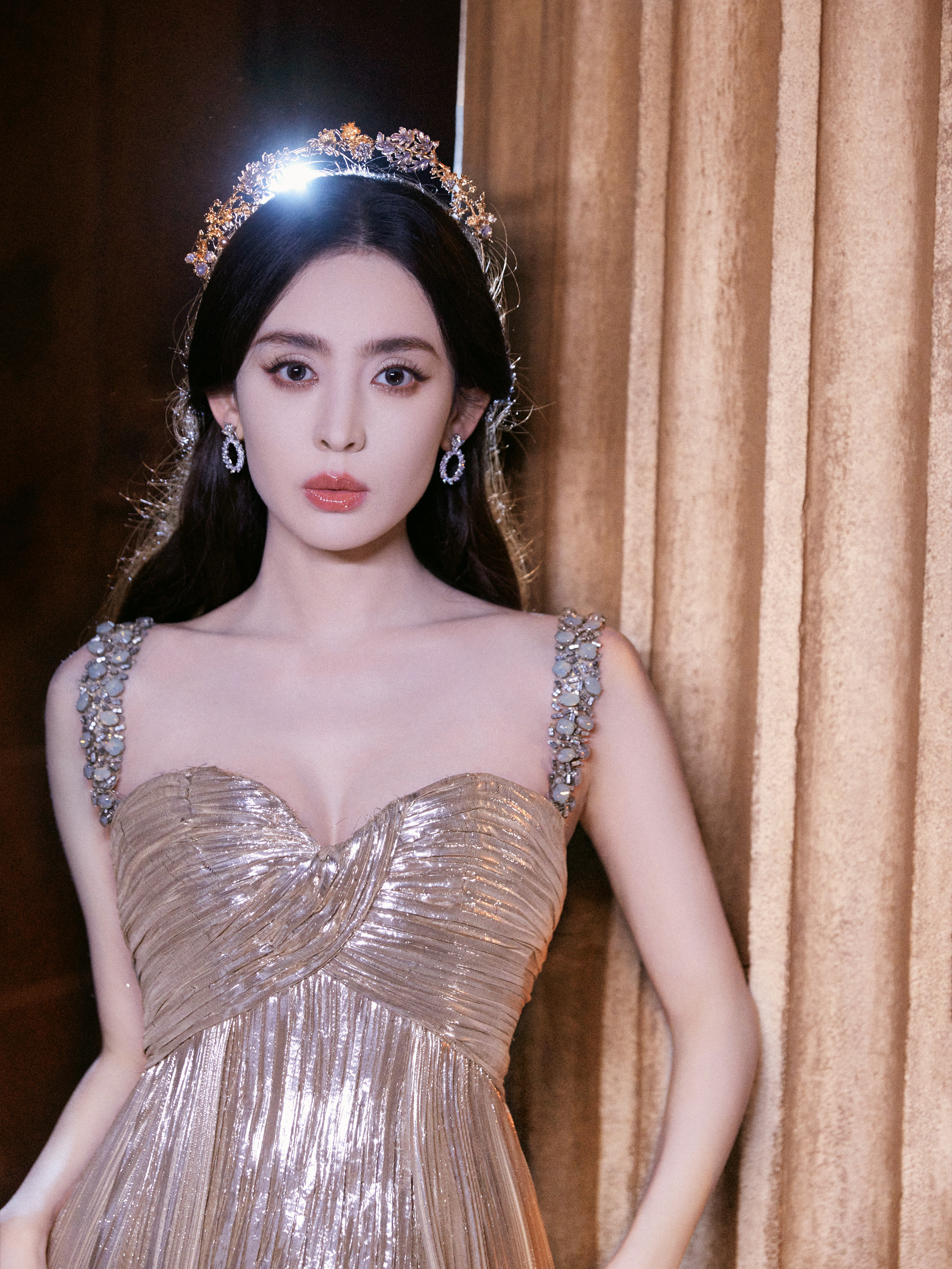 古力娜扎最新红毯造型,头戴皇冠,一身金色深v礼服尽显完美女神气质.