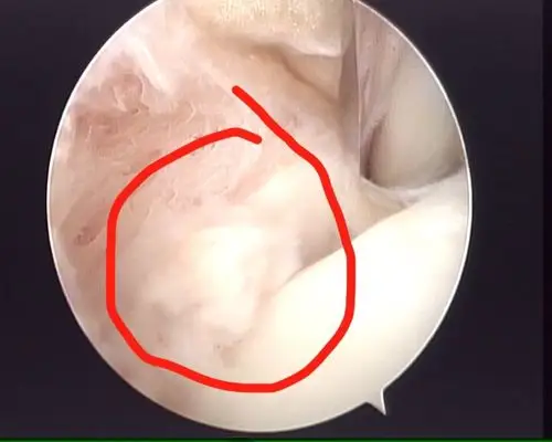 胫距前内侧间隙有滑膜增生,引起嵌顿疼痛.术前患者诉踝内侧疼痛.