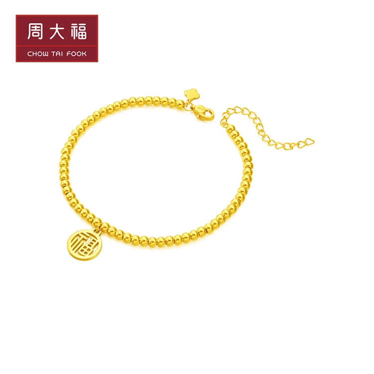 周大福 一生一世 足金黄金串珠手链(计价) 圣诞礼物