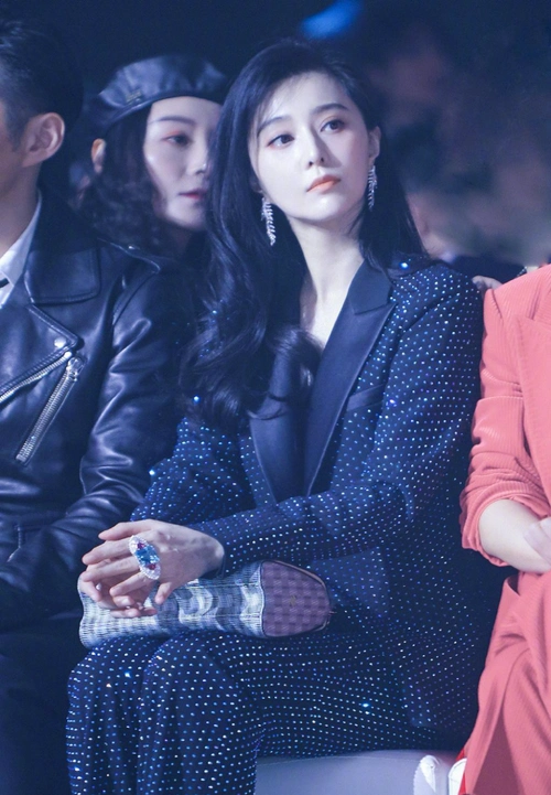 范冰冰西装长裙搭黑发带似复古名伶