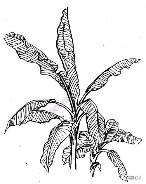 美术素描植物,芭蕉叶子 工笔白描,黑白线稿本站是提供个人知识管理的