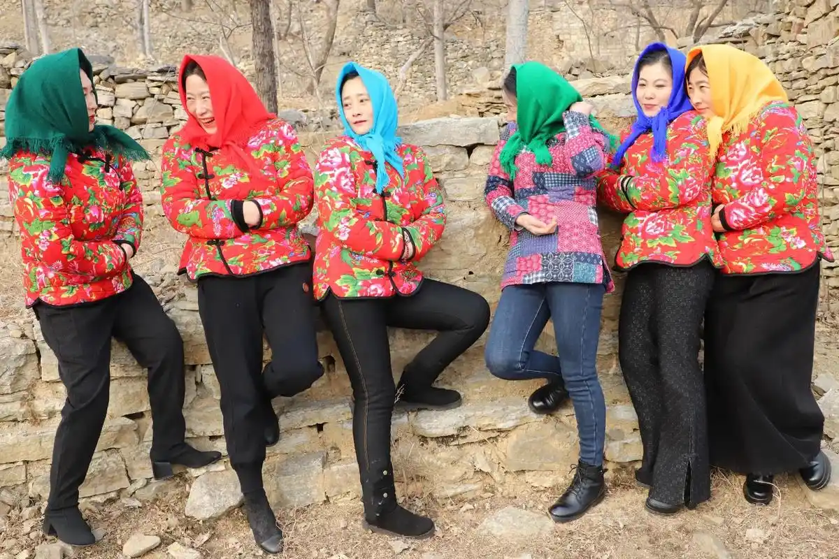 "村花"街头站,花袄红又艳;姊妹来组团,山村风景线.要想领回 - 抖音