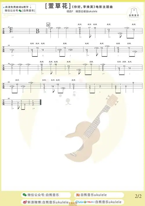 张小斐萱草花尤克里里指弹谱及教学视频白熊音乐