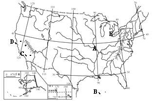 美国是世界第一经济强国,工农业发达,读美国部分区域图,回答问题.