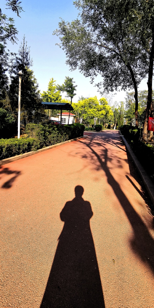 阳光正射下来,影子很清晰,来张自拍