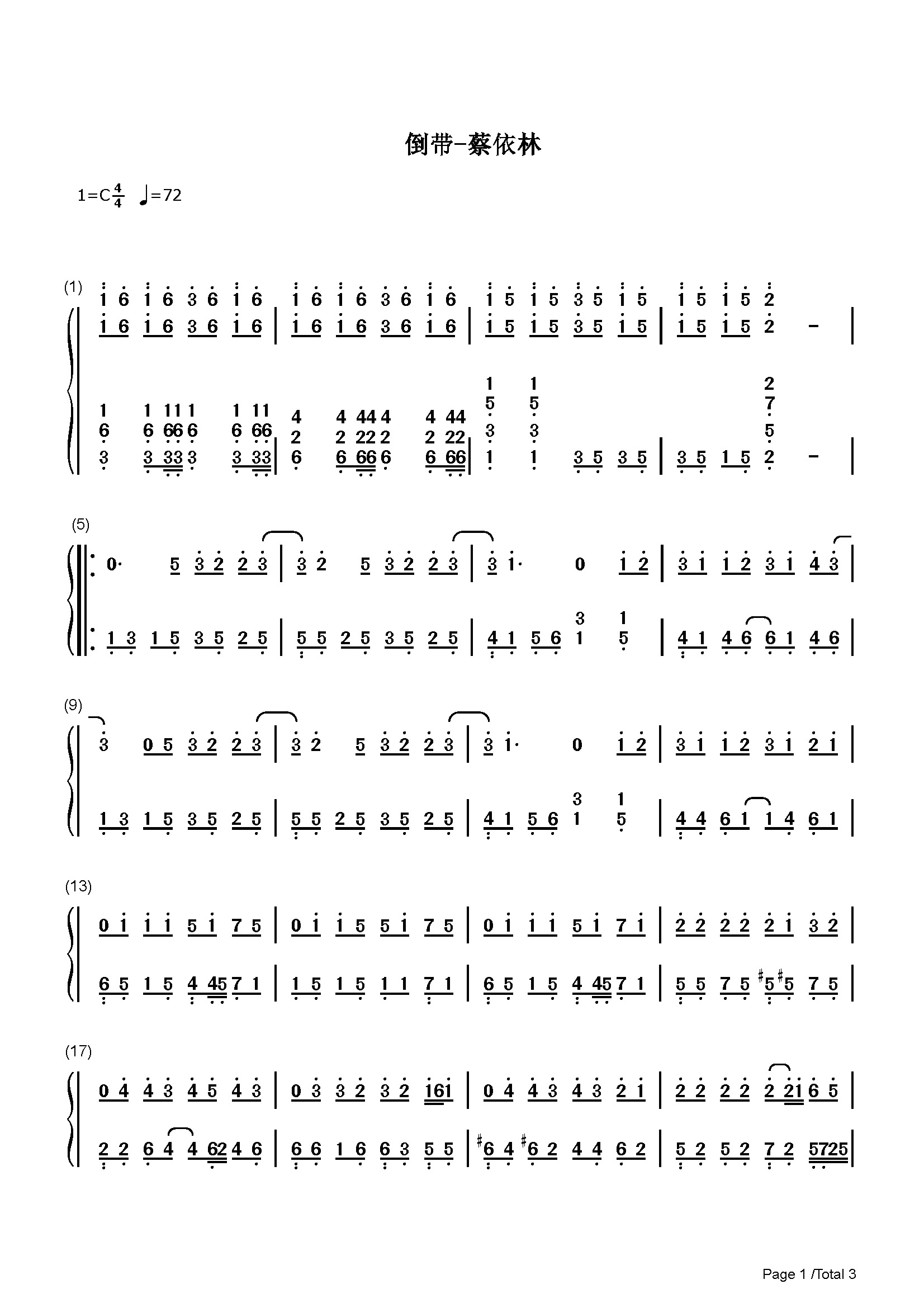 倒带_蔡依林_c调 _流行钢琴双手简谱_钢琴谱|钢琴五线谱|钢琴简谱
