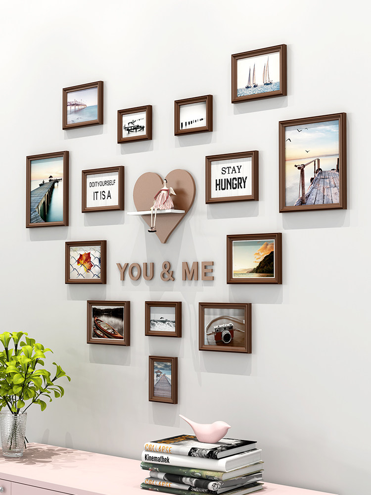 照片墙装饰少女生爱心形相框悬挂墙组合卧室房间布置相册背景