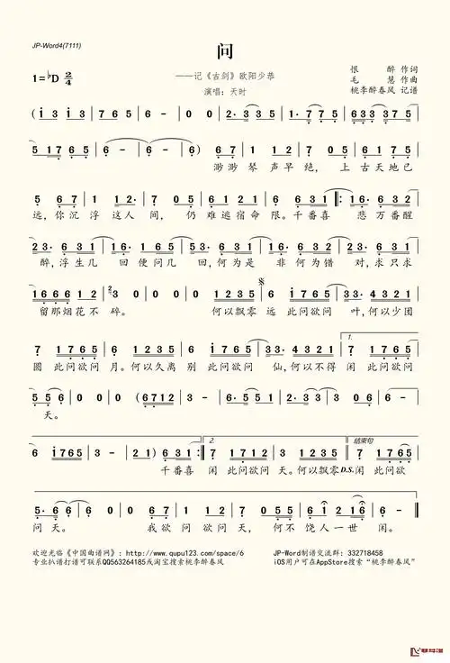 问简谱(歌词)-天时演唱-桃李醉春风记谱1