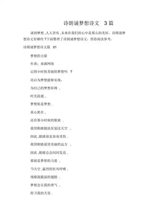 诗朗诵梦想诗文3篇