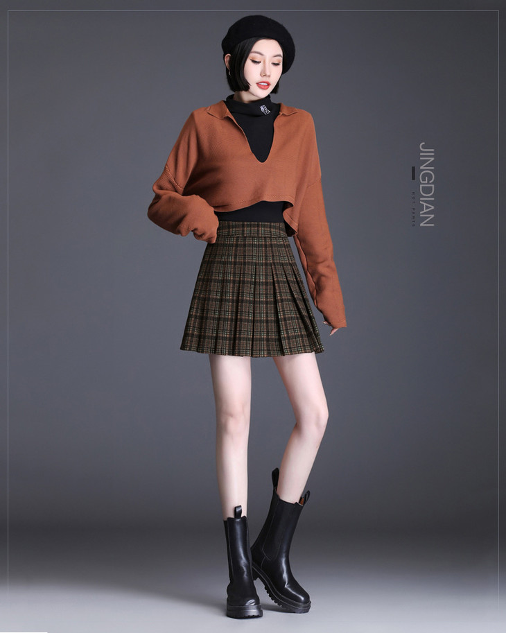 半身裙秋冬季a字百褶裙女高腰短款箱褶裙