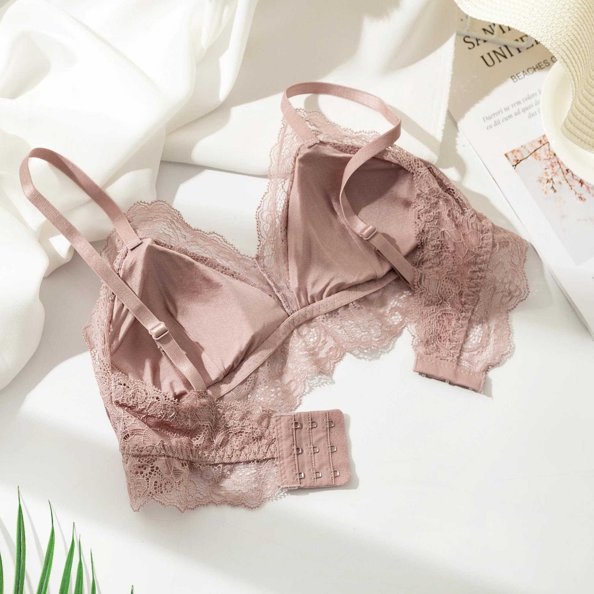 法国女性丝绸蕾丝胸罩内衣薄丝绸性感透气女孩内衣