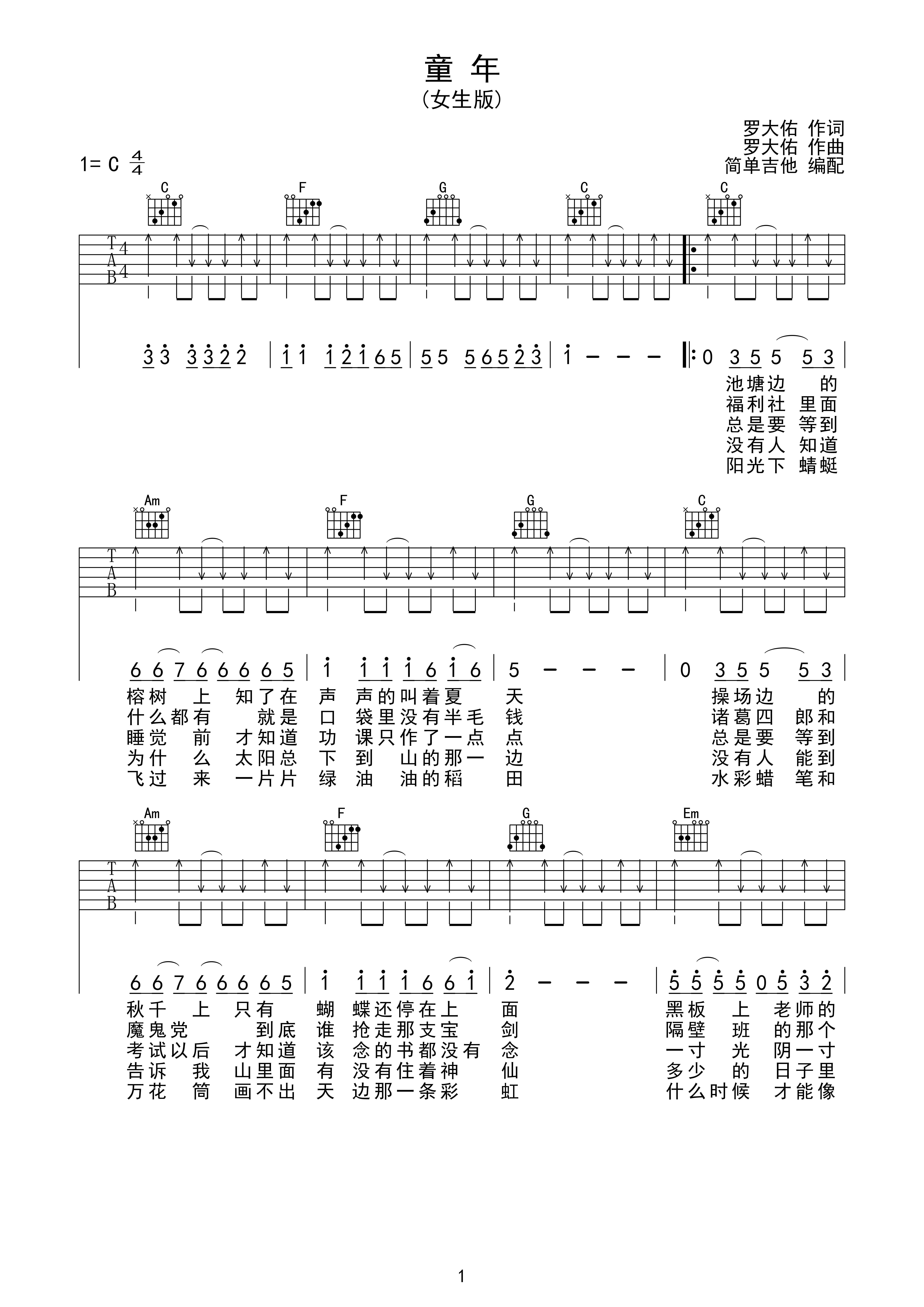 童年吉他谱 c调简单版_17吉他编配_罗大佑-看谱啦