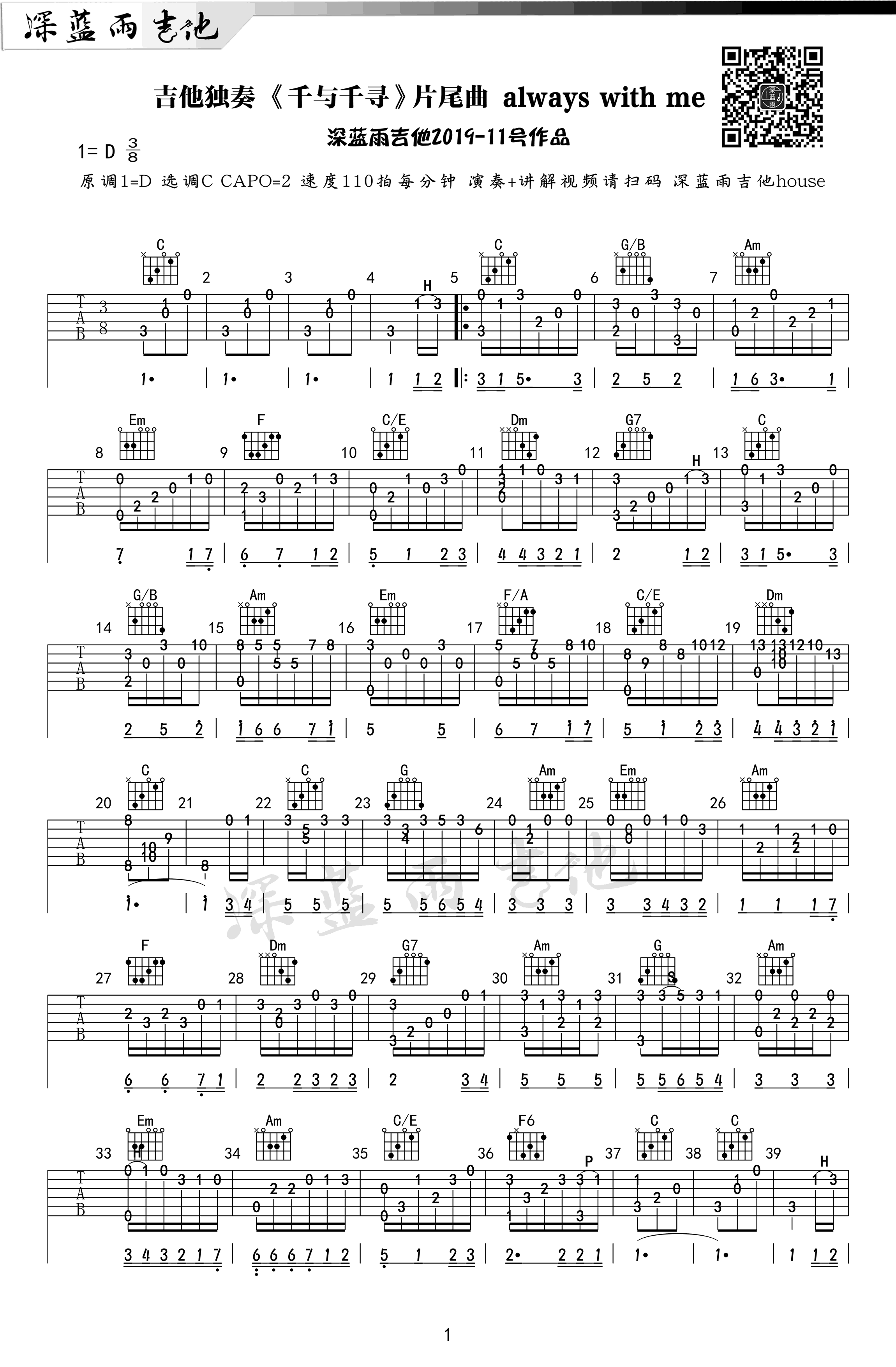 千与千寻-always with me-吉他谱-指弹独奏-1