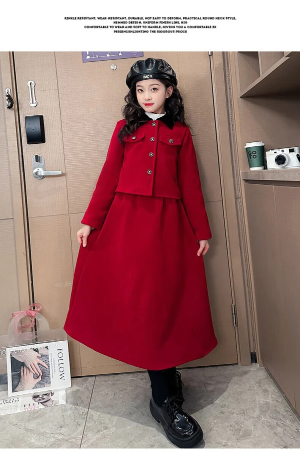 亲在龙年本命年12岁女孩裙子套装女童拜年服大童女装过年喜庆红色衣服