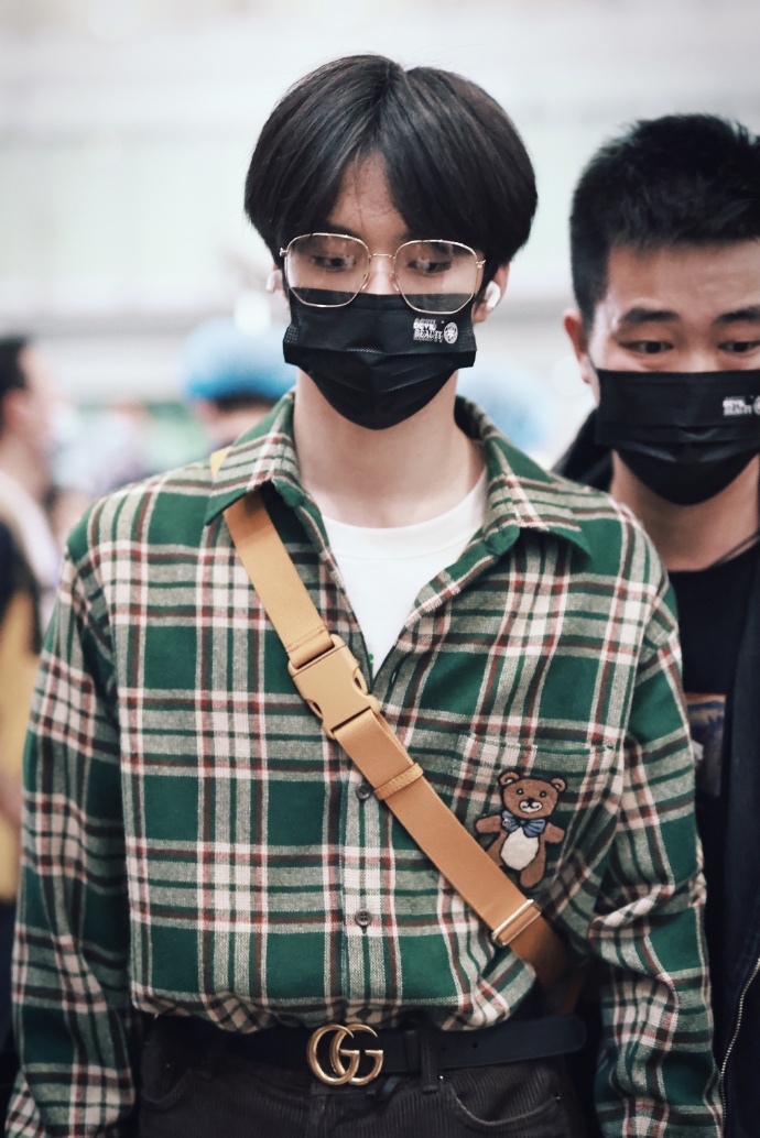 刘耀文机场饭拍#刘耀文绿色格子衬衫# 眼镜杀机场model出街@时代少年