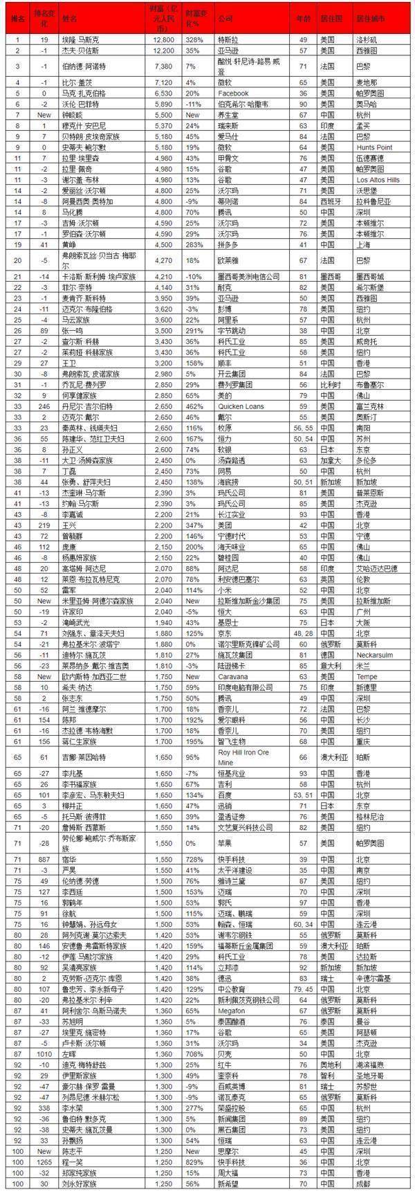 2021胡润全球富豪榜(中国)注:上榜企业家财富计算截止日期为2021年1月