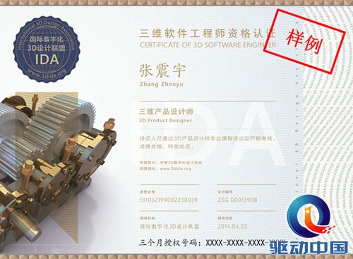 国际数字化3d设计联盟认证的三维设计工程师证书