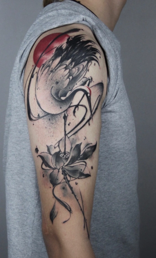中国风仙鹤纹身图片_脚部水墨纹身图案