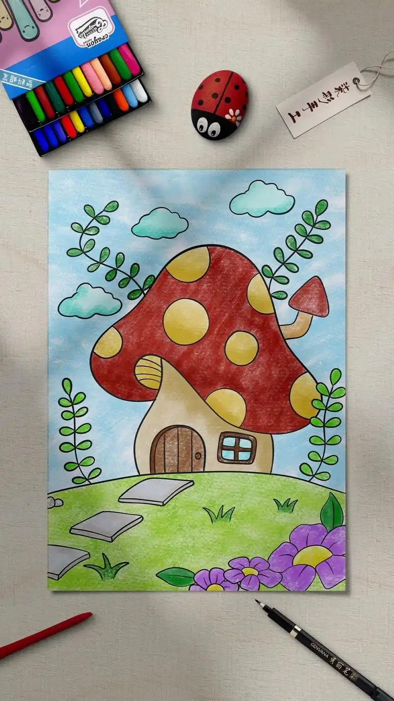 小朋友都喜欢的蘑菇房子简笔画来啦,爱画画的孩子你 - 抖音