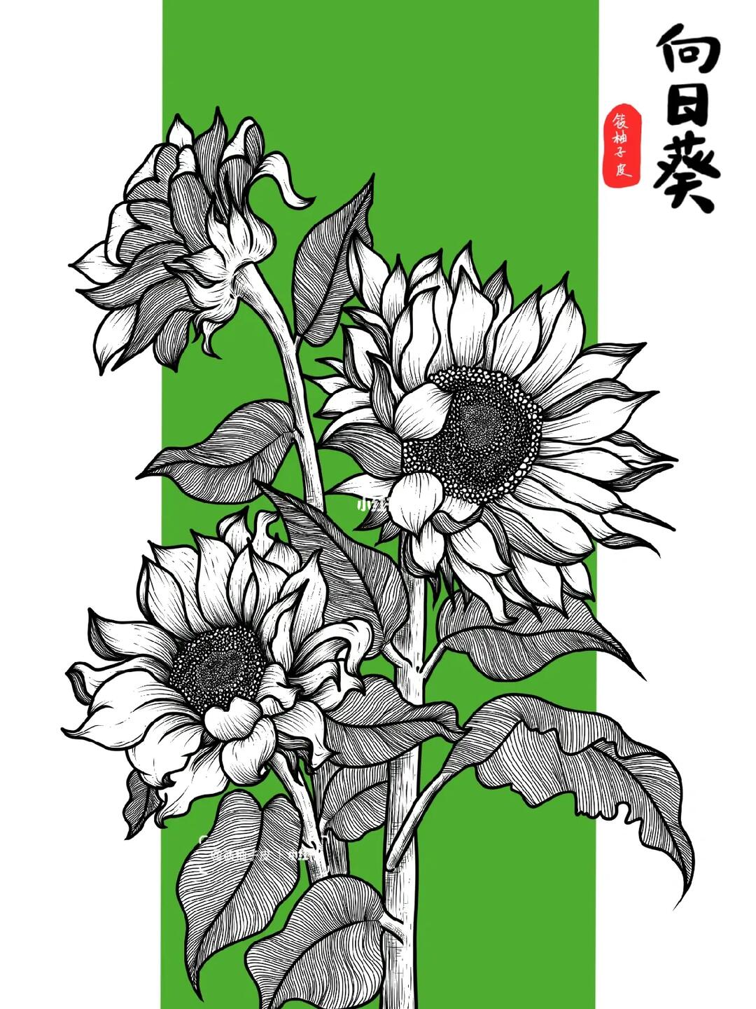 向日葵黑白线描画