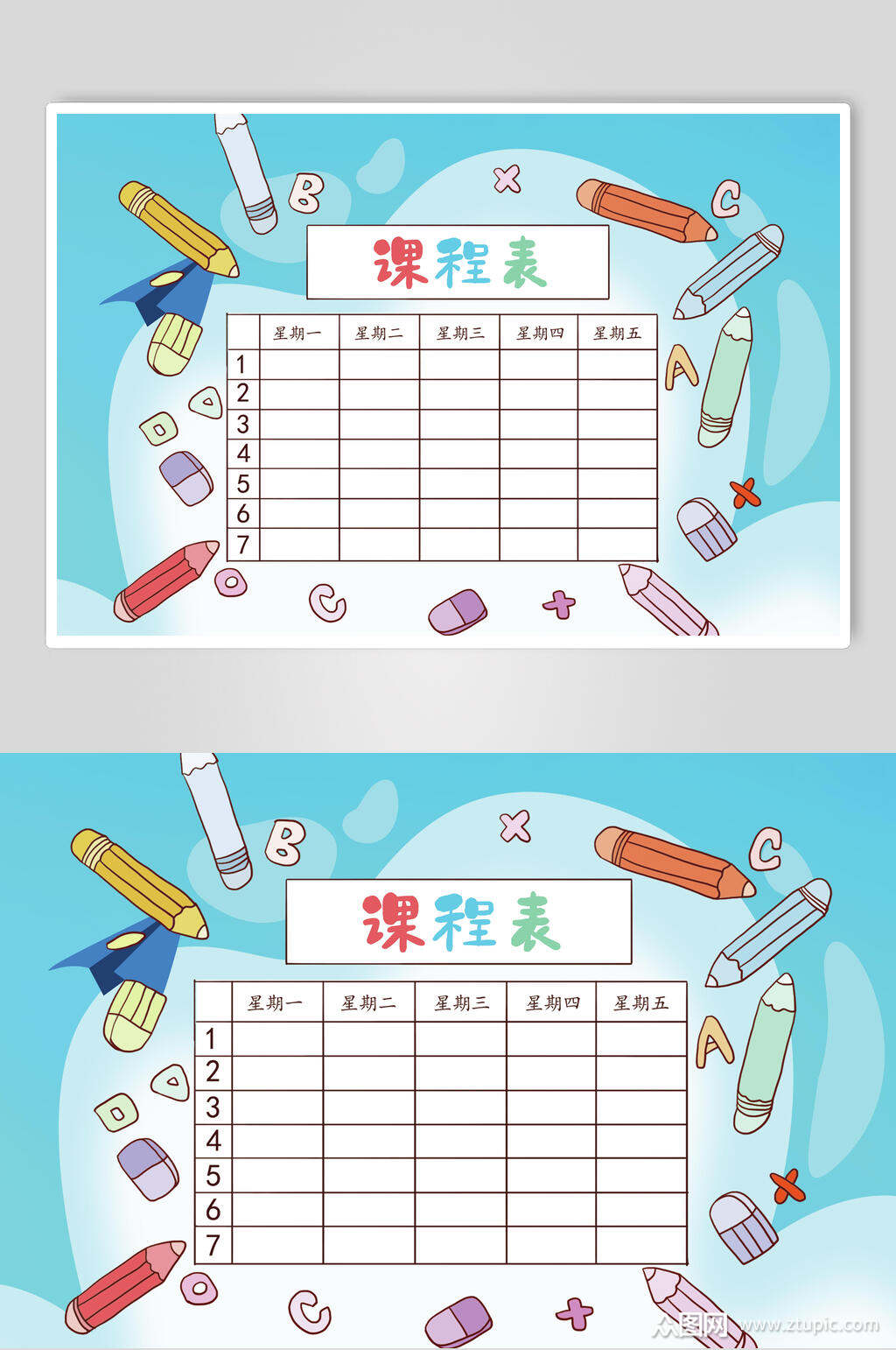 手绘表格课程表png素材透明免抠图片-卡通手绘