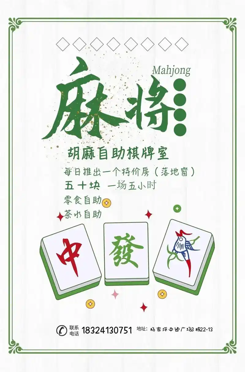 棋牌室文化设计麻将海报