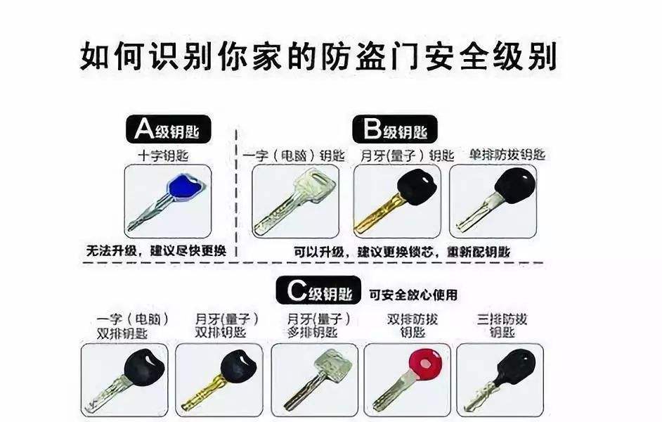 从钥匙形状区分锁具防盗性能高低为abc级,看家里的锁芯安全吗?