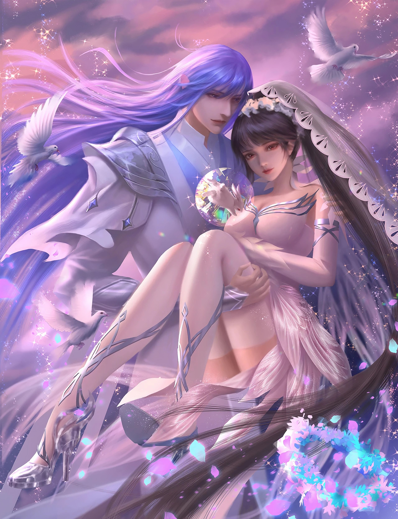 斗罗绝美婚纱照,"三舞"古典凤冠很惊艳,小舞的粉色嫁衣太绝了