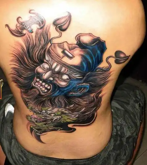 男子背部天师钟馗满背彩绘纹身图案分享!