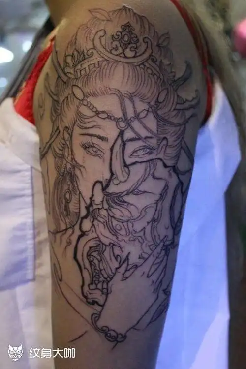 手臂纹身图案艺伎,艺伎线条纹身图案大全-图片大观-奇异网