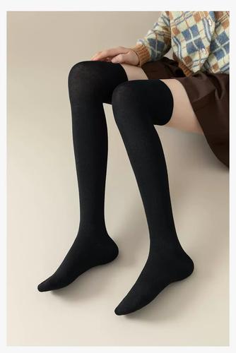 高个子加长版过膝袜子女春秋冬黑丝袜ins潮长筒防滑高筒大腿长袜 黑色