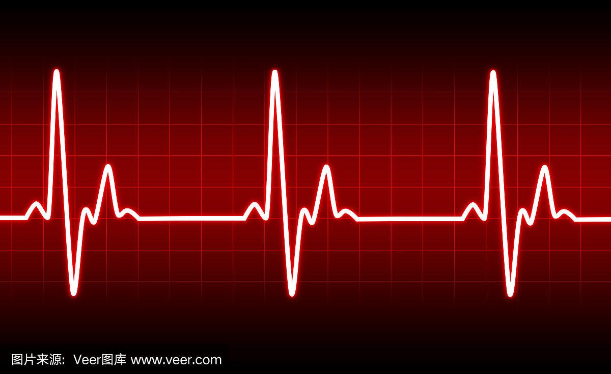 红色背景下的心电图