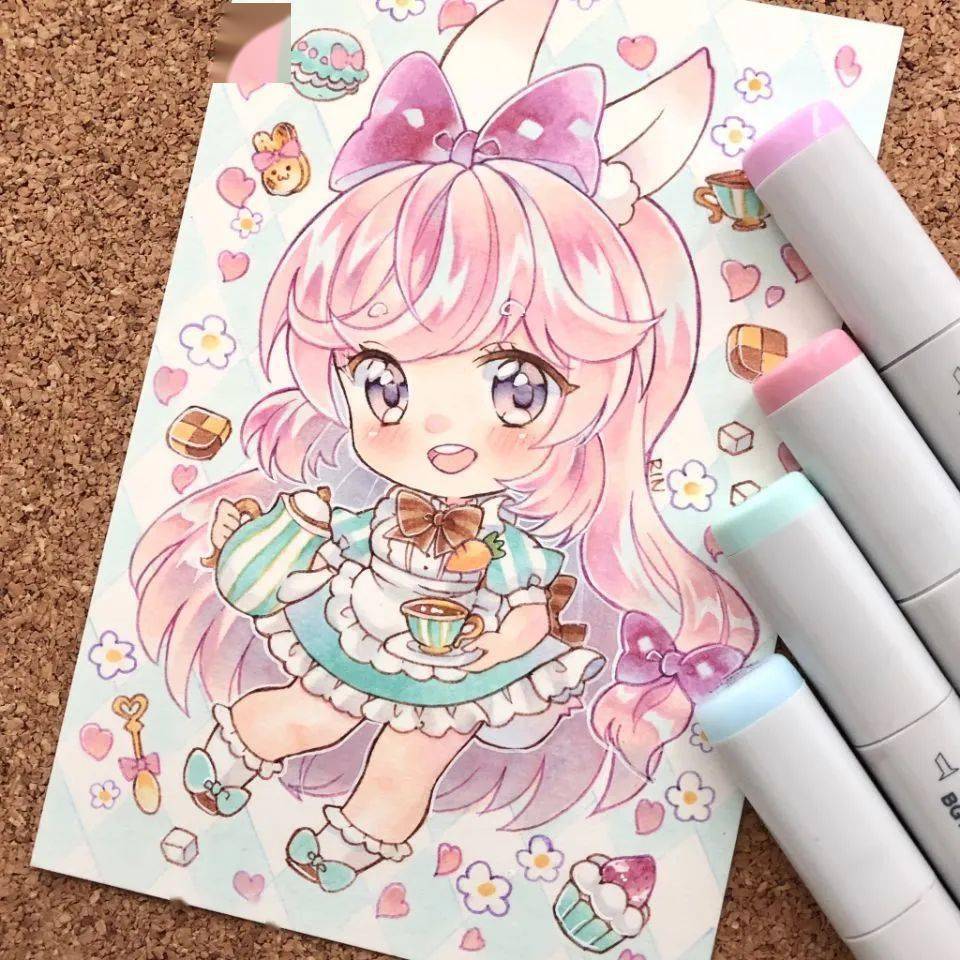 马克笔q版 | 小白也能临摹的简单动漫人物手绘素材