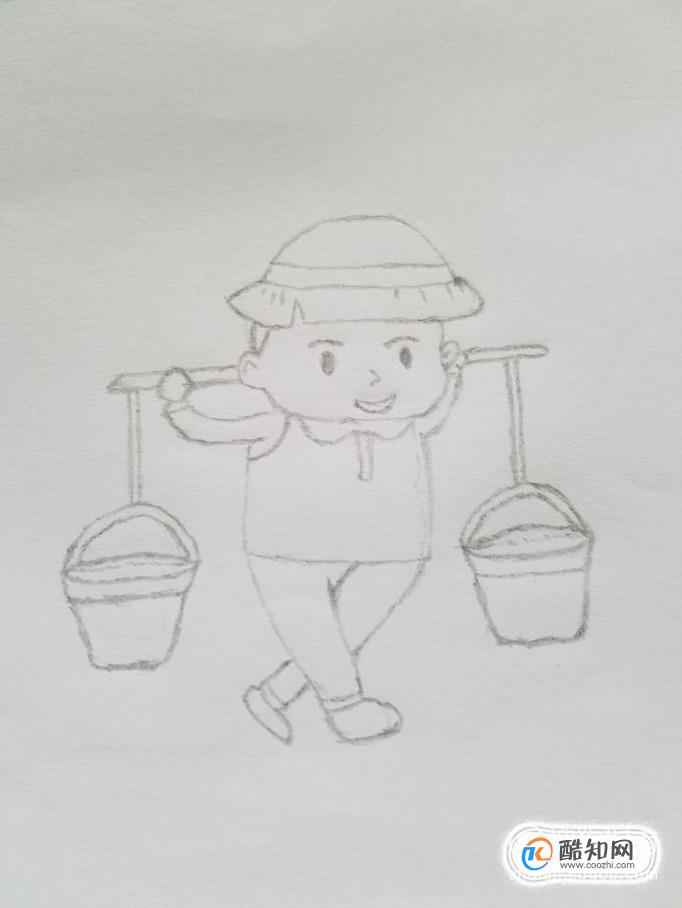 简笔画挑水的小男孩优质