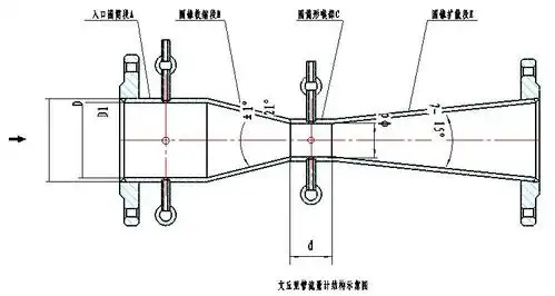 文丘里管原理 流体通过中间直径较小的管道进入截面较大的后腔后,后腔