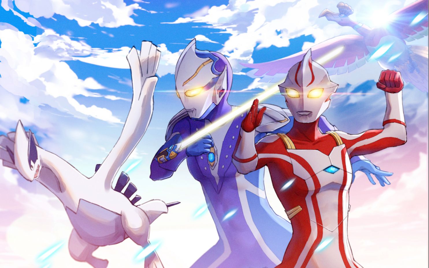 板绘奥特曼x宝可梦希卡利x梦比优斯是凤王和洛奇亚