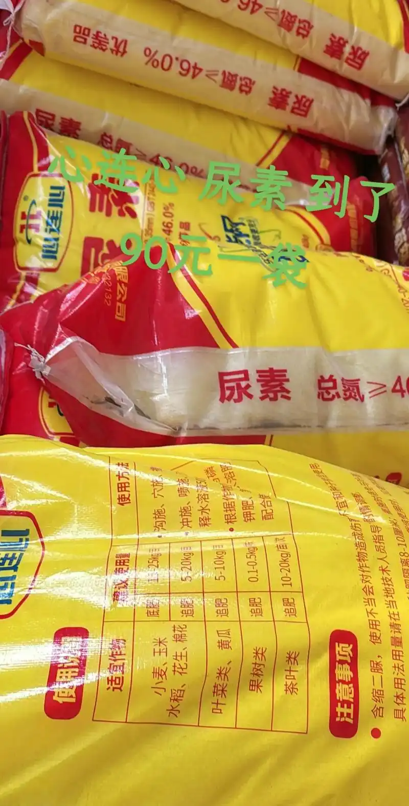 心连心 尿素 到了 90元一袋