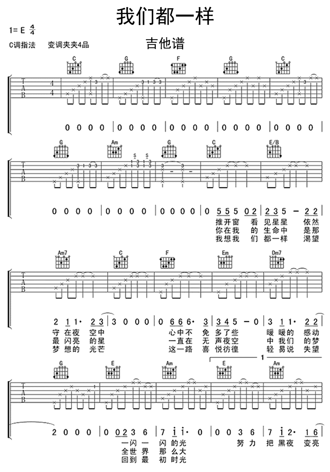 我们都一样(弹唱吉他谱)
